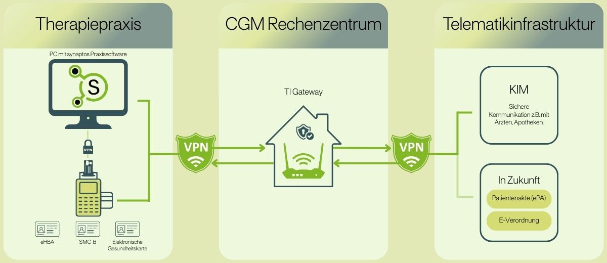 synaptos bietet Dir gemeinsam mit unserem Partner CGM (CompuGroup Medical)eine ideale TI Lösung.